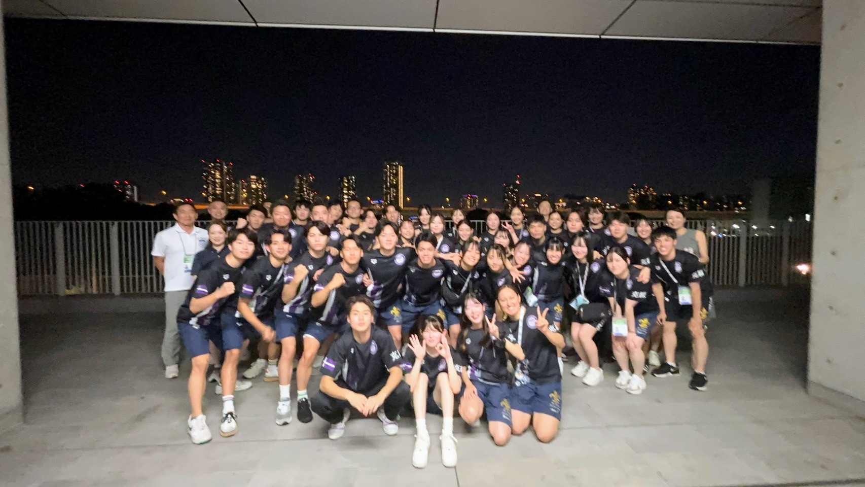 本学水泳部は、男子18名、女子12名、大会運営1名、マネージャー9名の総勢40名で戦いに臨みました。