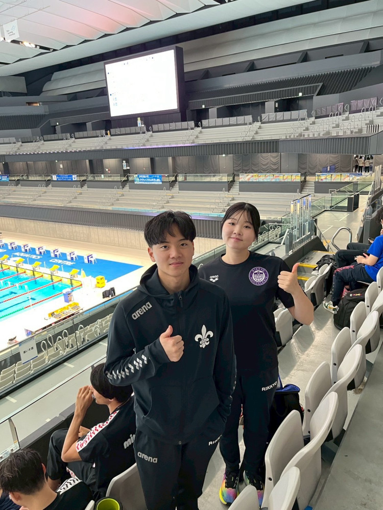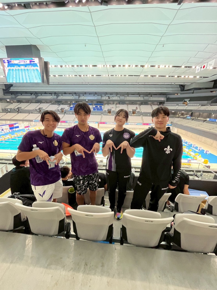 本学水泳部からは、3年神尾が100mバタフライ、200mバタフライの2種目に出場しました。