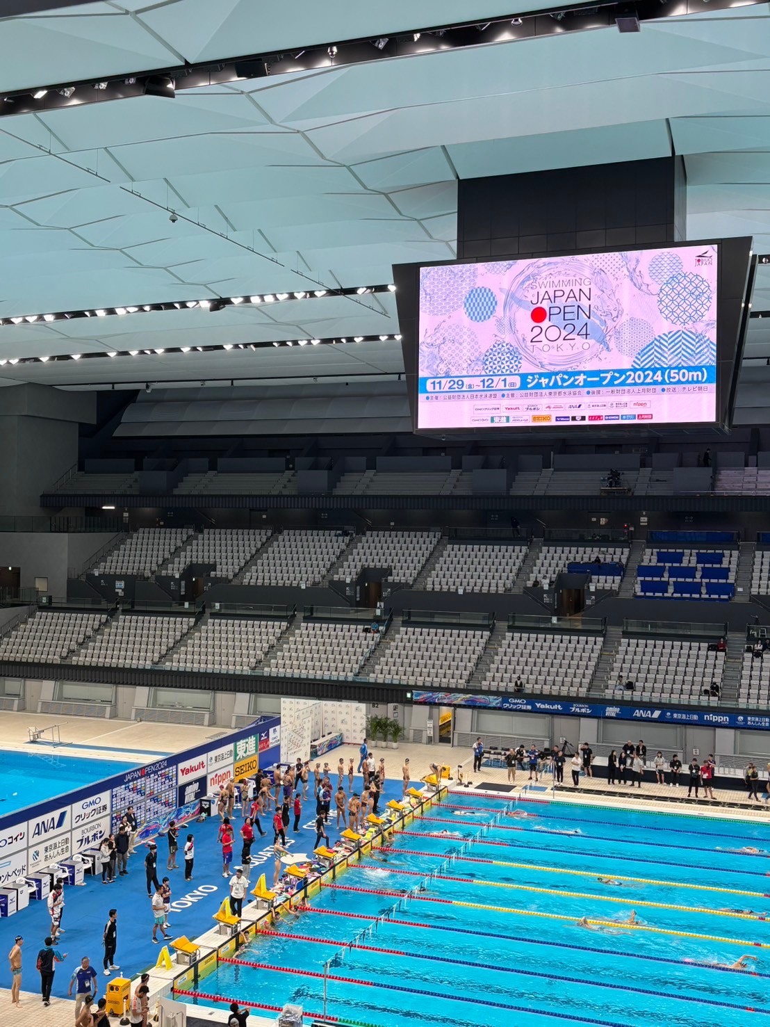 本大会は日本のトップレベルのスイマーたちが一同に集結する、非常にレベルの高い大会です。