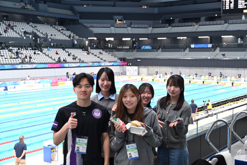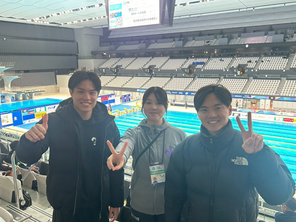 本大会は、日本のトップレベルのスイマーたちが一同に集結する、非常にレベルの高い大会です。冬季シーズンでは初めての長水路大会でした。本学水泳部からは4名が7種目に出場しました。