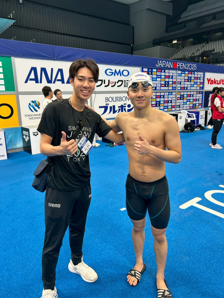 また、水泳部特別強化コーチである田中優弥コーチも50mバタフライでA決勝2位(日本人選手トップ)、100mバタフライでB決勝3位という好成績を収めました。