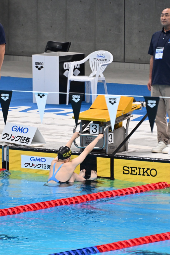 トップスイマーたちの白熱したレースが展開される中、2年和田望実が50m平泳ぎにおいて自己ベストを更新し、あわせて立教新記録を樹立しました。さらに、200m平泳ぎではB決勝8位と健闘し、好成績を収めました。