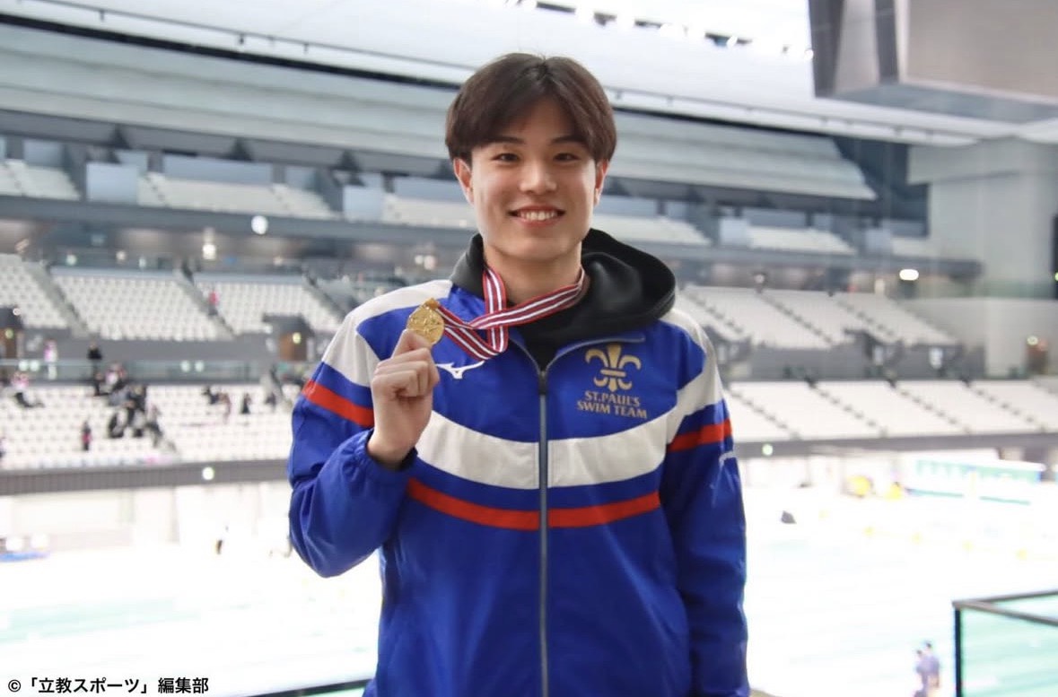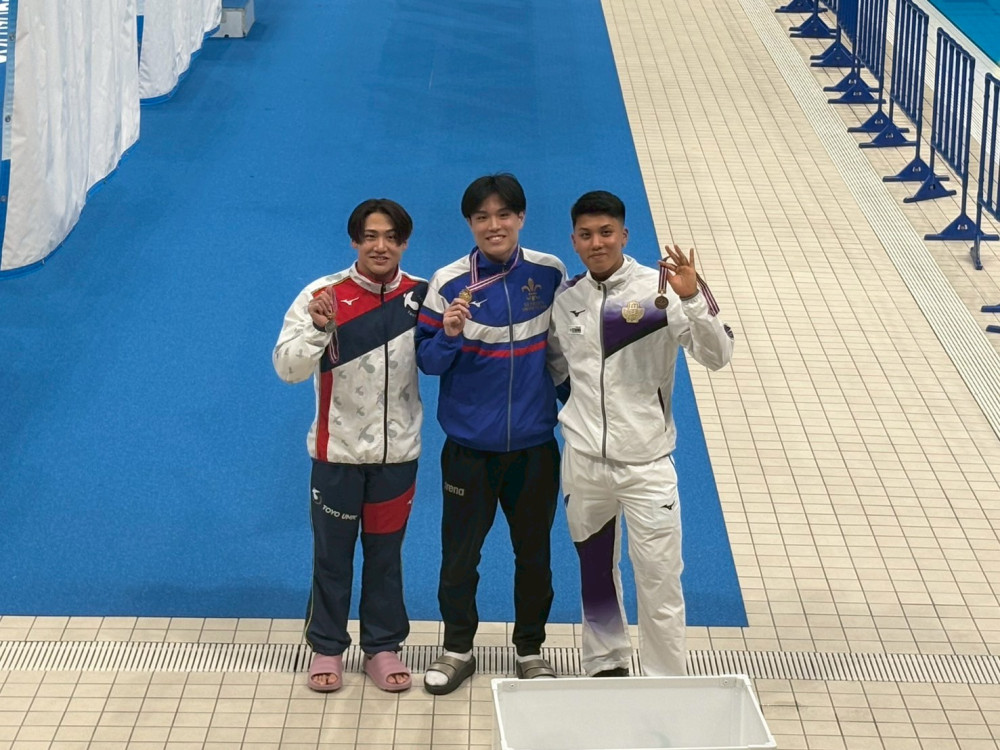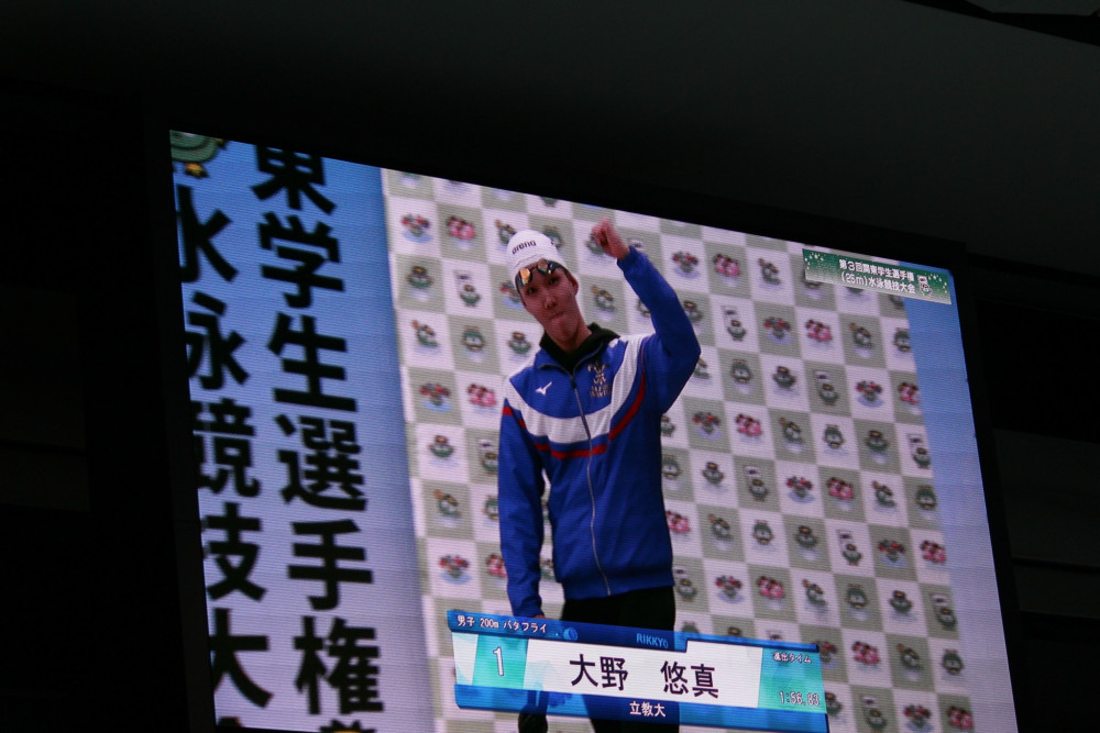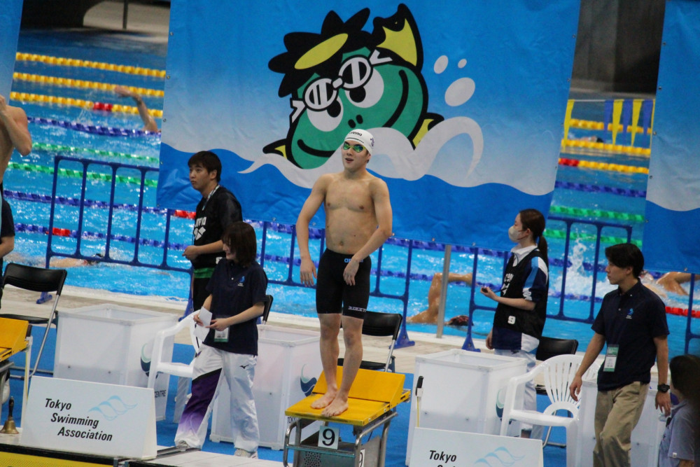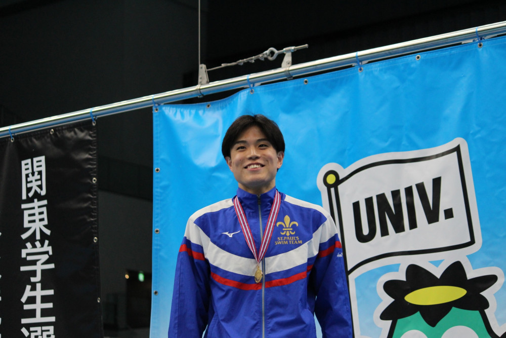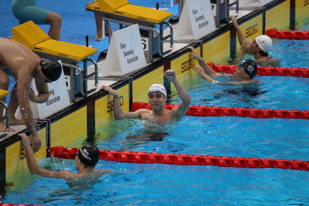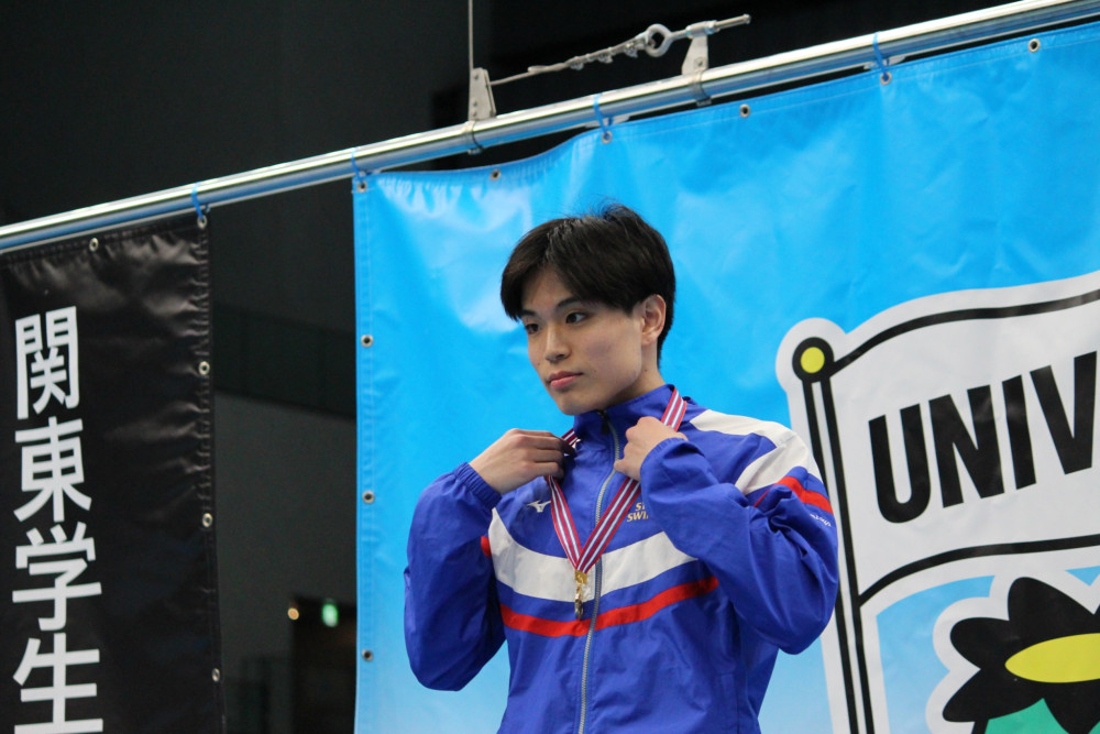 2年和田望実は100m・50m平泳ぎの両種目で優勝し、二冠を達成するとともに、その成績が評価され、男子平泳ぎ優秀者に選出されました。立教新記録、及び大会新記録を更新する圧巻の泳ぎで、チームの躍進に大きく貢献しました。
