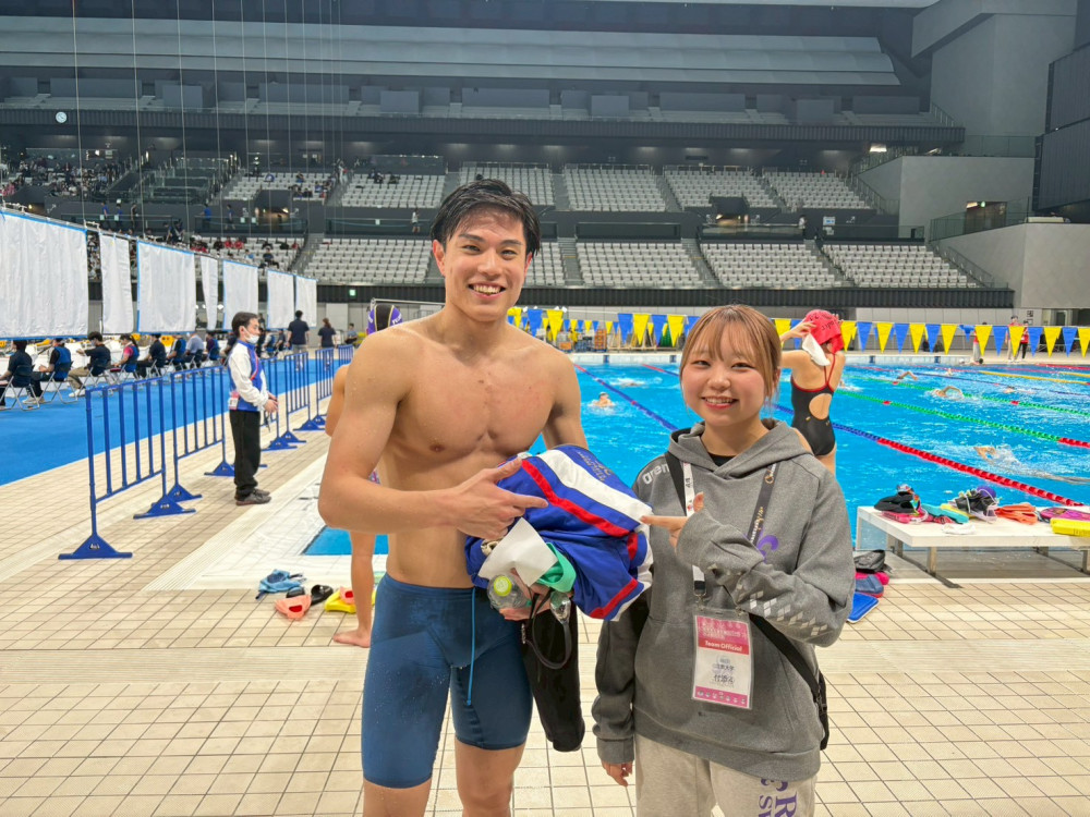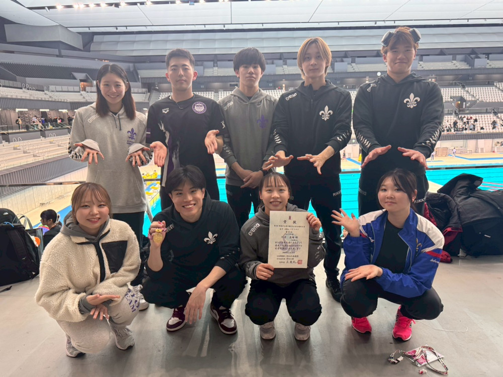 スキンレースやビクトリーセレモニーなど、今大会ならではのイベントを通して大会の雰囲気を存分に味わうとともに、好成績を収めた部員の泳ぎから多くの刺激を受け、それぞれが自身の課題を見つめ直す貴重な機会となりました。チームとしても大変実り多い大会となり、2025年を締めくくるにふさわしい大会となりました。