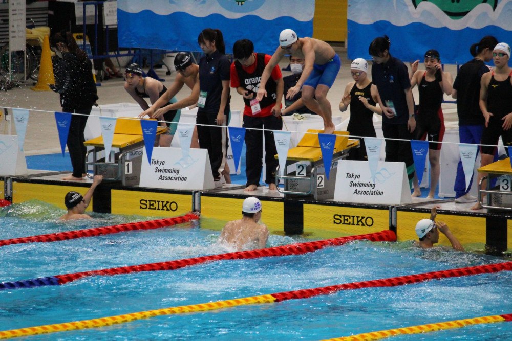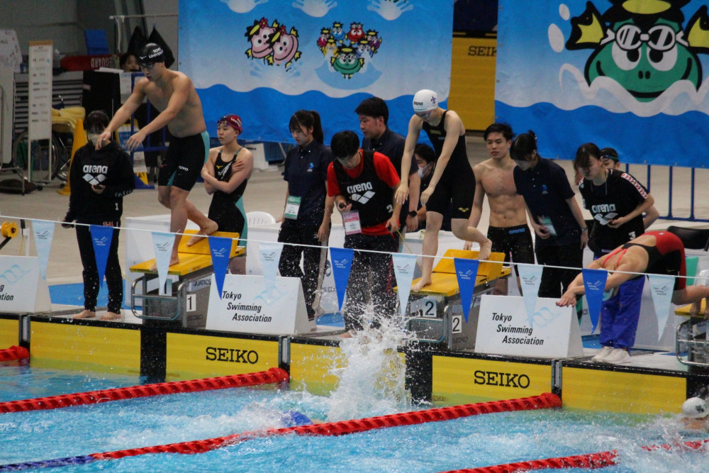 また本大会は大学対抗戦(関東支部53校が出場)となるため、各大学水泳部が母校の名誉を掛けて試合に臨みました。本大会にはインカレシード校も出場する中で、本学は男子8位、女子13位、総合12位と大健闘を果たしました。