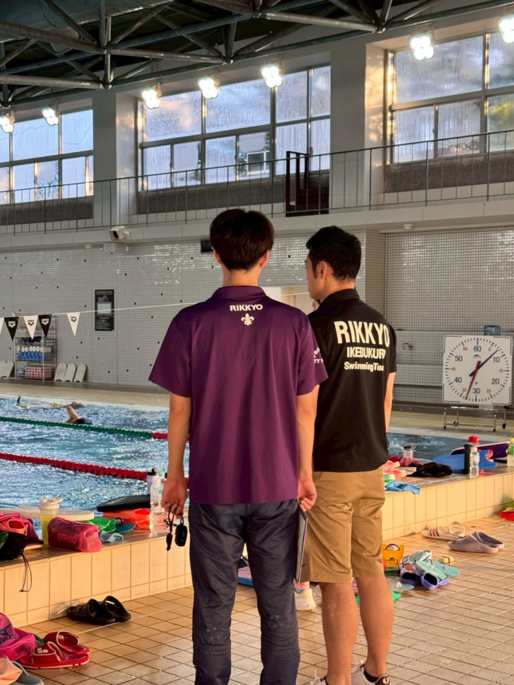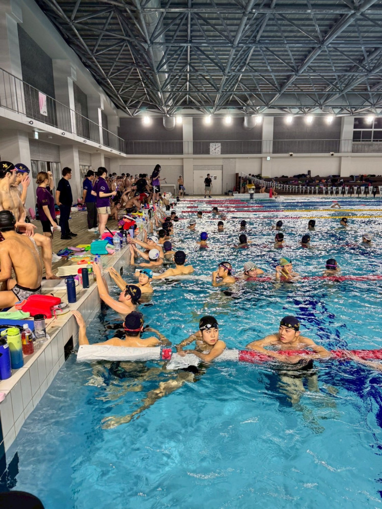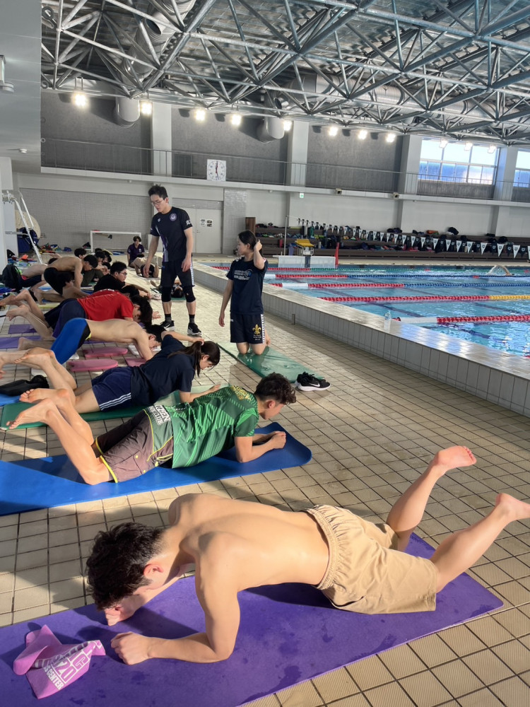 午後練習は、メイン練習でスタイル種目 50m x 60本を行いました。レースペースを意識しながら、持久力の向上を目指しました。お互いを鼓舞する声も自然と大きくなり、良い雰囲気の中で練習をすることができました。