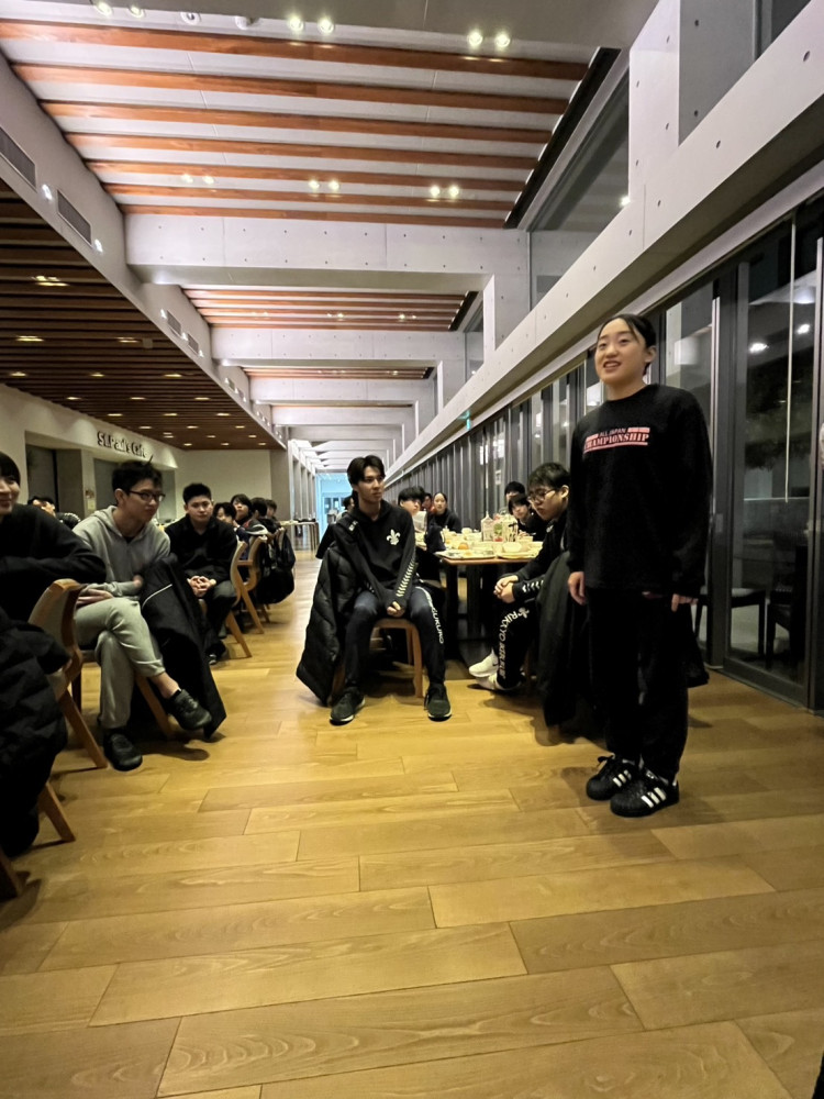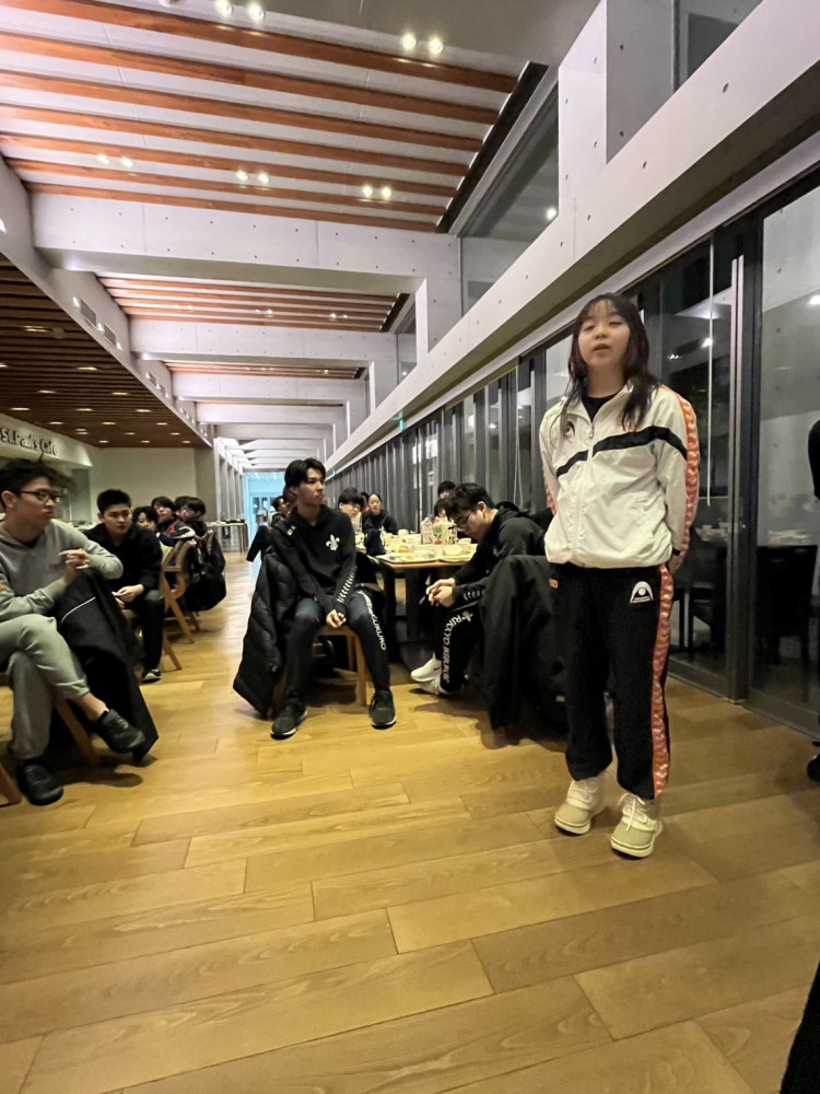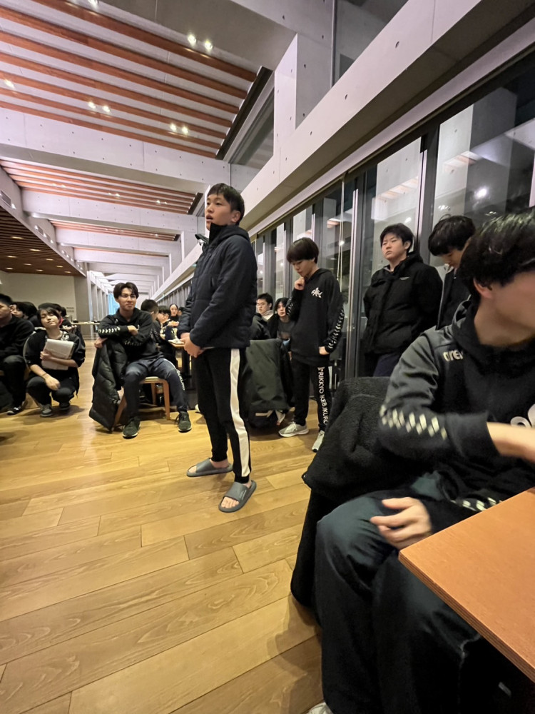 合宿2日目は、朝食前の体操からスタートしました。気温が低く寒い中でしたが、コミュニケーションを取りながら体を温めることができました。