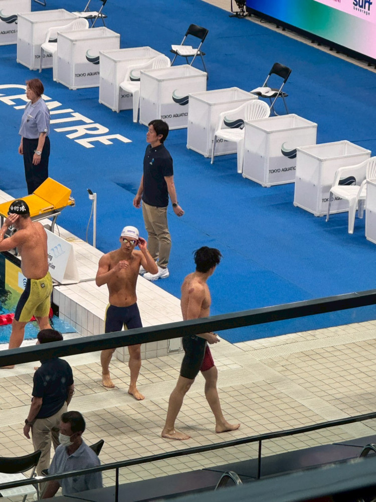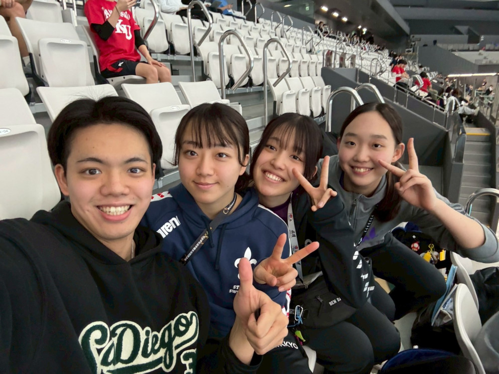 1年名川結唯が200m背泳ぎでB決勝8位、100m背泳ぎB決勝10位という成績を収めました。また、特別強化コーチの田中優弥コーチは、50mバタフライにおいて予選を突破し、スキンレースに進出しました。スキンレースでは、第1ラウンド・第2ラウンドともに4位となりました。さらに、100mバタフライでは、B決勝2位という好成績を収めました。